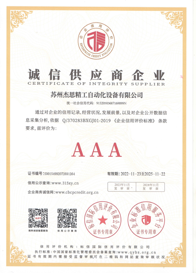 蘇州杰思精工自動化設(shè)備有限公司本著“高質(zhì)量,優(yōu)服務(wù),求發(fā)展”的精神,